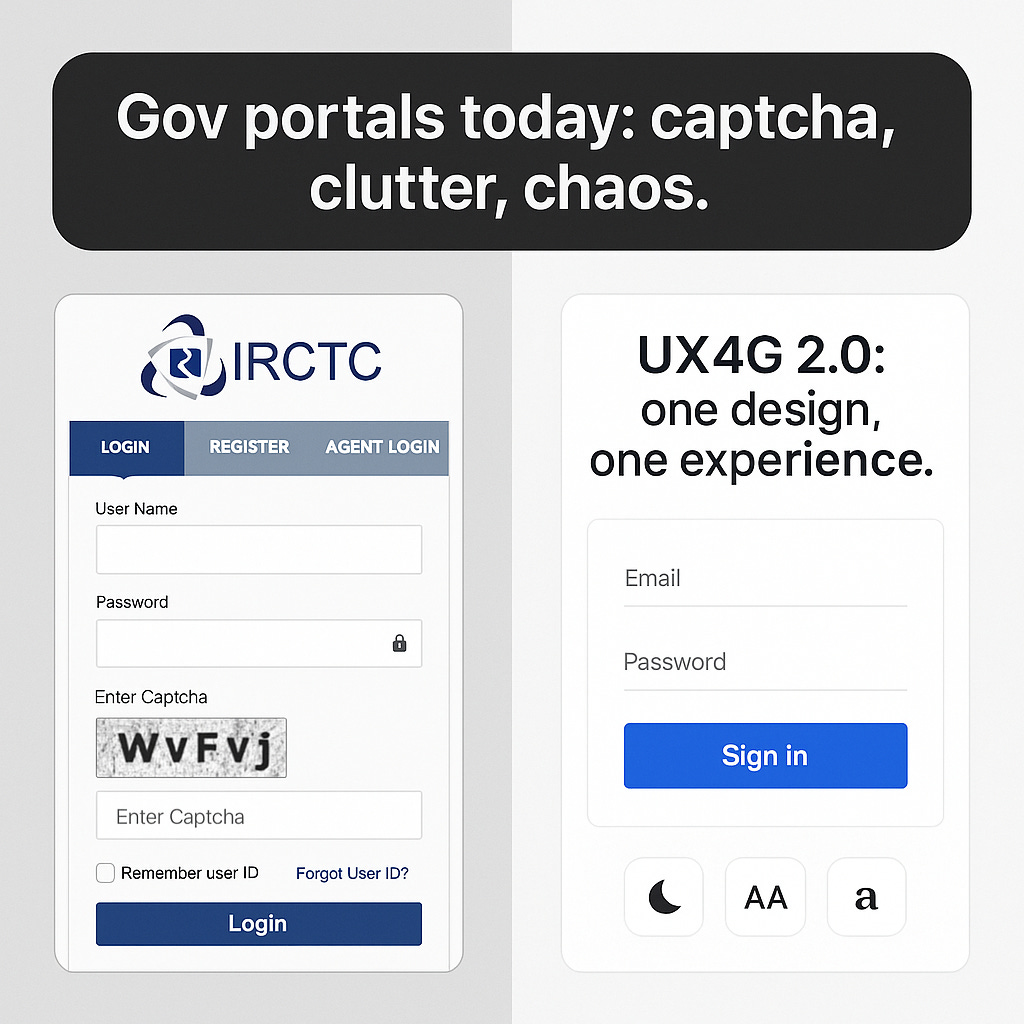 I recently helped my aunt navigate IRCTC to book a train ticket-and half her time was spent wrestling with captchas, multiple login steps, and tiny buttons she couldn’t read. It struck me: what if every government portal just… worked the way Paytm or Swiggy does?